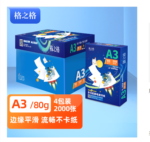 格之格/G&G A3 复印纸 嫦娥 A3 80G复印纸 打印纸 双面打印 500张/包 4包/箱